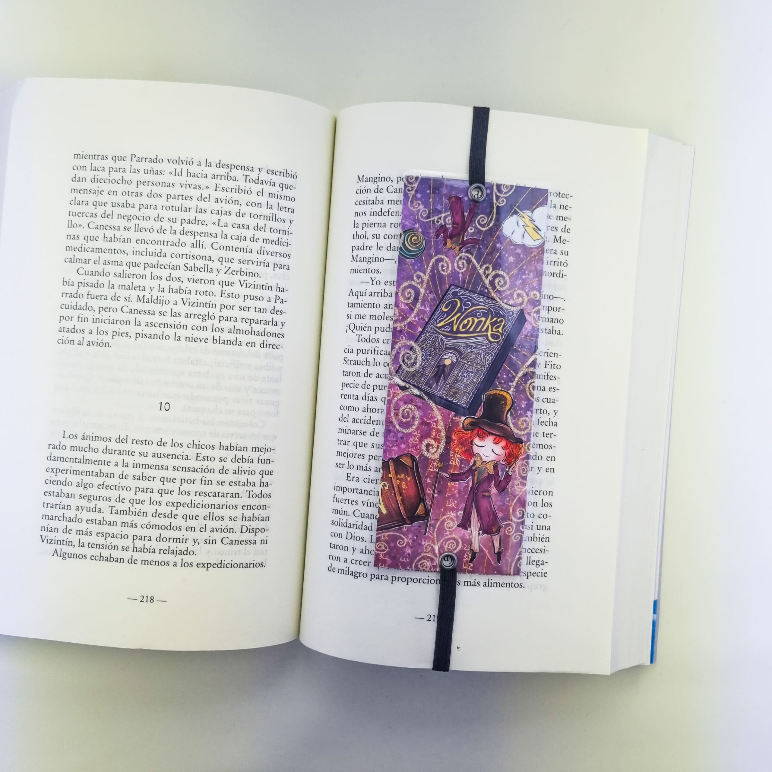 Descubre nuestro marcapáginas con elástico hecho a mano, diseñado para lectores que valoran la calidad y los detalles únicos. Posee ilustraciones y diseños exclusivos que no encontrarás en otras tiendas. Gracias a su elástico resistente, se adapta perfectamente a libros de diferentes tamaños, evitando que se pierda tu página.